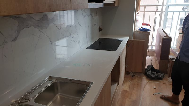 Đá ốp mặt bếp màu trắng được nhiều người ưa chuộng và lựa chọn để trang trí không gian nhà bếp.