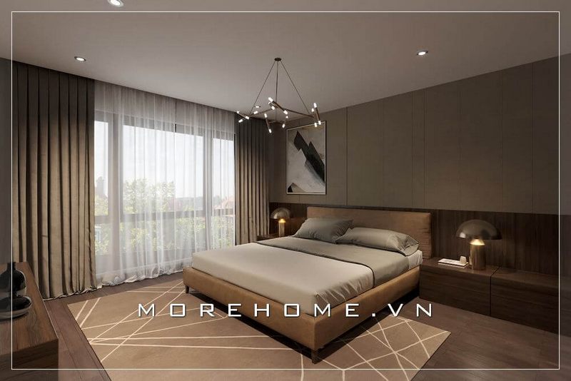 Phòng ngủ hiện đại được thiết kế với gam màu thanh nhã và sắc nét.